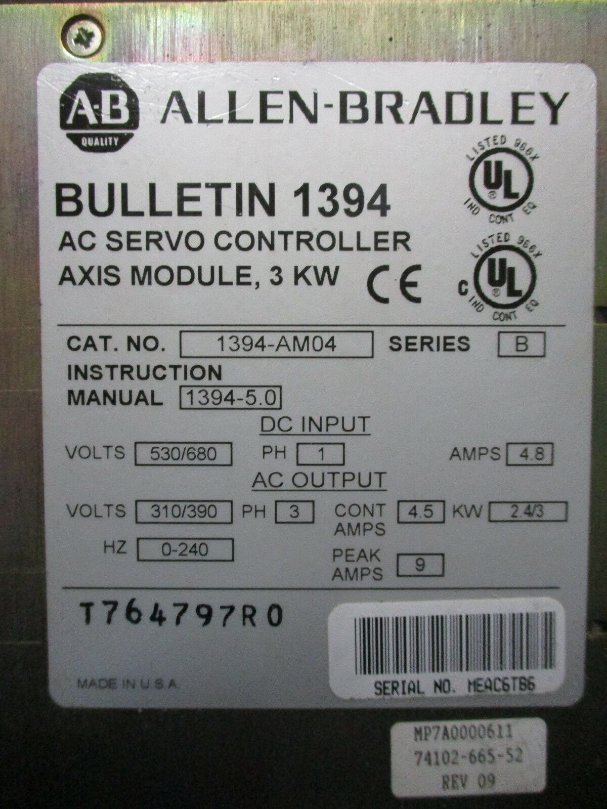 You are bidding for Allen Badley 1394-AM04 AC Servo Controller Axis Module,