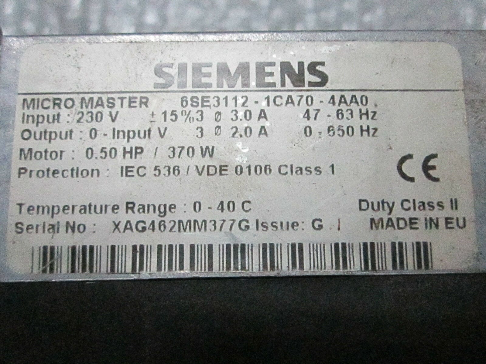 - This Siemens 6SE3112-1CA70-4AA0 Micromaster AC Drive came from factory surplus used stock and looks great in condition.